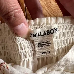 Billabong Seas the Day Ivory Floral Maxi V Neck Flutter Sleeve Tiered Dress Med