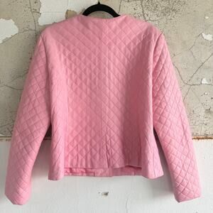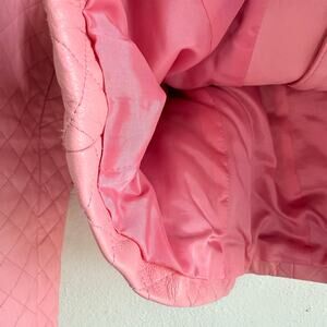 Vtg Leather Jacket Pink Quilted Collarless Womens XL 90s Barbiecore Coquette