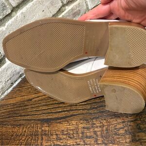 Silent D Naydo Anthropologie booties. Creamy white color, they had some scuffs and I used a white polish to even them out, if you look closely there is a bit of color variation at the toe part. Good condition, only worn once for a very brief period. Size 39 .Crafted from supple natural leather with tall pleated gussets and stacked block heel, the Americana-inspired NAYDO offers a chic and versatile option for career girls and ladies who brunch alike. Style with boyfriend jeans and a trench coat or layer with a denim skirt and button-down.