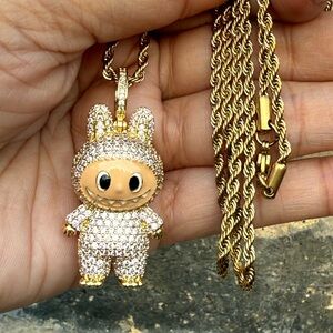 Gold chain Labubu Necklace Pendant 24”