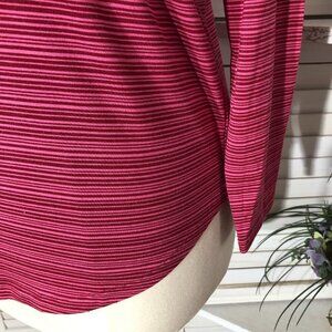 Athleta Long Sleeve Striped Shirt Pink Scoop Neck Large