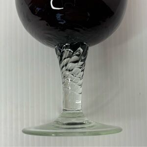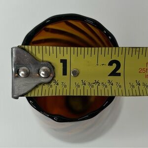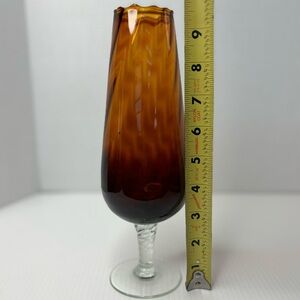 Beautiful Empoli Italian Amber vase with swirled clear stem in great pre-owned vintage condition. Perfect addition to any MCM decor enthusiast. This vase stands approximately 9 3/4” tall and 2” wide at the top.