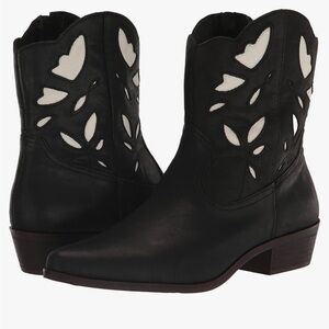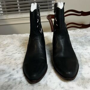 New Lucky Brand Herzie Black Leather Cowboy Short Boots Cutouts sz 6 / 36.5