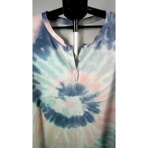 Women's Tie Dye Long Sleeve Button V-Neck Sweatshirt