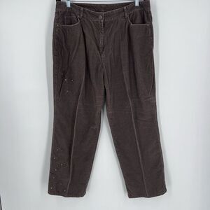 J. Jill Embellished Corduroy ankle Pants Size 16 petite Dark Brown rhinestone