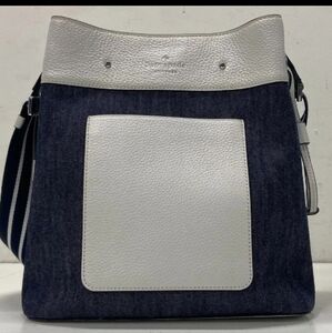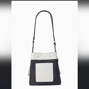 Kate Spade-Marti Large Bucket Shoulder Bag (Denim White Dove 🕊️/ Multi)