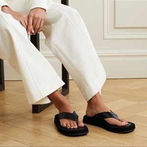 The Row Ginza leather and suede platform flip flops - LIKE NEW