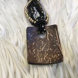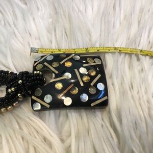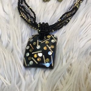 This Vintage Black, Mother of Pearl Gold & Silver glass Beaded 5 Strand Necklace and Earring Set is so unique. The set is not only unique it gorgeous, versatile and a total head turner.
