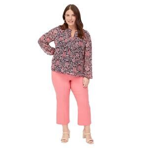 Lane Bryant Pin-Tuck Crew-Neck Blouse Plus Size 20 Pink Coral Floral