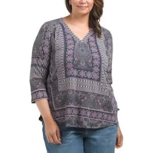 • features: This Lucky Brand peasant blouse captures a vibrant bohemian aesthetic with its intricate, colorful paisley and geometric print. Made from a comfortable blend of 66% cotton 28% viscose and 6% linen, the relaxed, flowy silhouette and V-neck create a flattering boho chic or cottagecore look, perfect as a tunic or top.