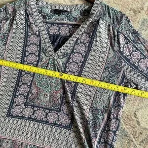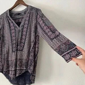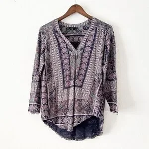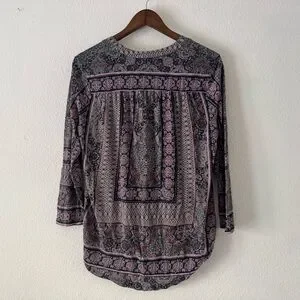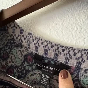 Lucky Brand peasant blouse top tunic XL womens paisley print bohemian boho chic flowy relaxed fit colorful geometric v-neck artistic effortless vintage style hippie casual everyday fall spring summer western prairie lagenlook cottagecore soft comfortable