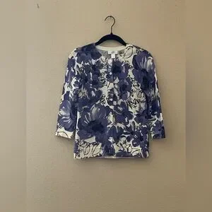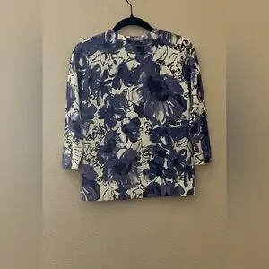 LOFT Blue and Cream Floral Women’s Button Up Cardigan 3/4 Sleeve Size XS