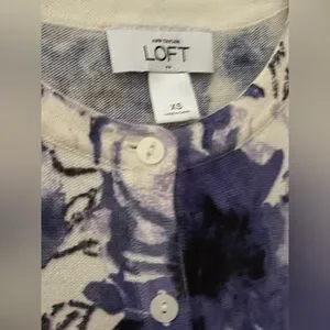 Chic LOFT cardigan with a bold bluish purple floral pattern. Perfect for versatile styling.