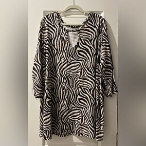 A feminine silhouette with three-quarter sleeves and swirl pattern. New without tags.