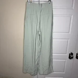 Zara Wide Leg Trousers Women's Small Lime Green High Waisted Modal Full Length
