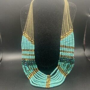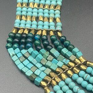 Nakamol Signed Necklace Layered Natural Stone Turquoise Bib Gold Bead Anthro SW