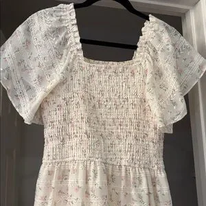 Elegant smocked dress with delicate floral accents. Ideal for any occasion. Size small