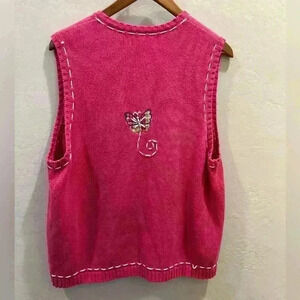 Mandal Bay Vintage Pink Sweater Vest Butterflies XL Ramie Cotton