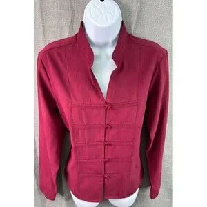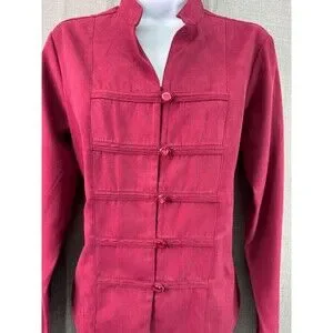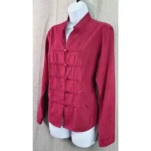 Dress Barn Women's Sueded Button Down Shirt Size M Red Asian Style Military