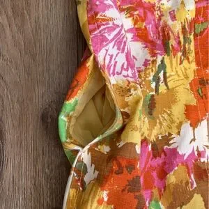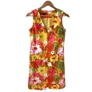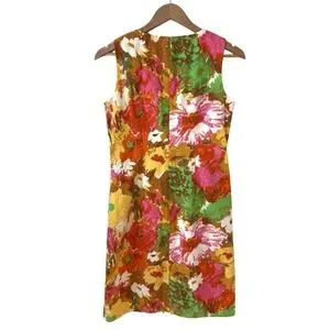 Talbots Dress Sheath Floral Pockets Sleeveless Bright Colors Size 6 100% cotton Wedding Vacation Artsy Vneck Date night Spring Summer Dress