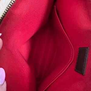 Beautiful bag and very interested. Can I just see one pic of the interior front pocket? I think there are 3 corner pics so if one is a duplicate (hard for me to tell) maybe that would make some room for another pic. Thanks so much!