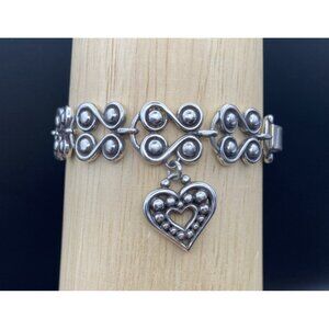 Signed Brighton Taos Heart Bracelet Silver Plate Retired 7.5" Southwestern