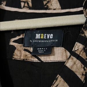 Anthropologie Black and Cream Leaf Print Maxi Dress