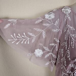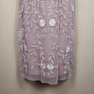 Adrianna Papell Embellished Dress Flutter Sleeve Cocktail Party Beaded Pink Sz 6