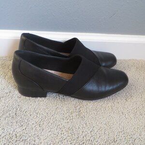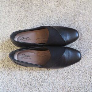 Clarks Womens Juliet Gem Shoes Size 7.5 Black Leather Slip-On Flats
