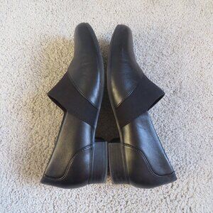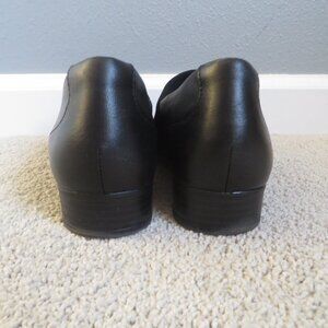 Clarks Womens Juliet Gem Shoes Size 7.5 Black Leather Slip-On Flats.