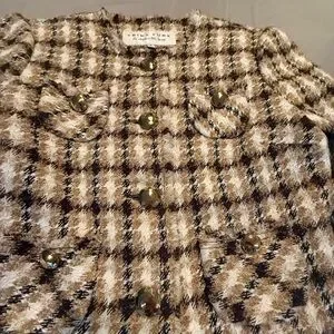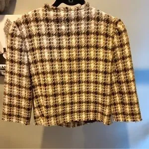 Trina Turk Gold Metallic Tweed 3/4 Sleeve Jacket w/ Gold Hardware Size 8/M $398