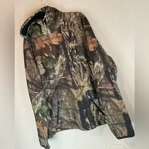 Mossy Oak~Men’s Fleece Hoodie~Built In Neck Gaiter~Zippered Front Pouch~Size L