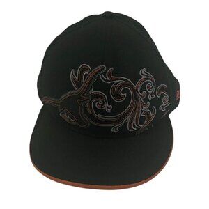New Era Fits Black With Gray And Orange Swirl Embroidered Design Cap Size 7 3/8