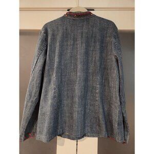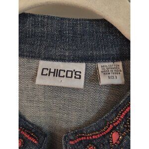Chicos Beaded Denim Blazer Jacket Sz 3 (XL) Coral Western Boho