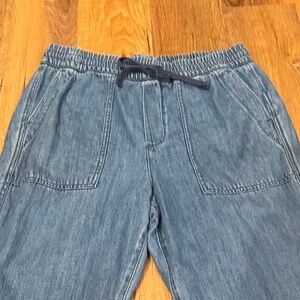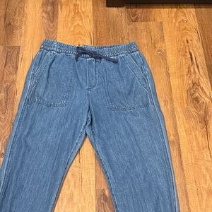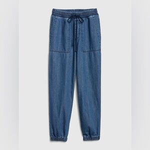 (EUC) GAP Women’s Utility Joggers (Color: Blue Denim) (Size: Medium) Stylish blue denim jogger pants with elastic cuffs and drawstring waist.