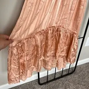 NWOT Ulla Johnson Peach Satin Embroidered Waist Midi Dress Sz 0