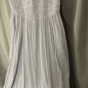 Chic maxi dress with a flowing silhouette. Soft lilac color adds elegance. Perfect for any occasion. Preloved gingham with alot of stretch on chest area has pockets