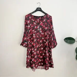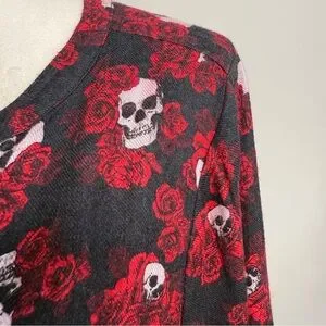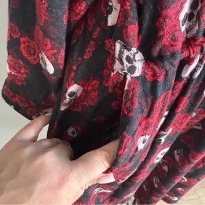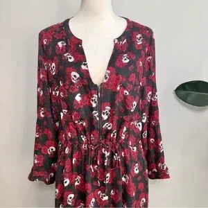 Torrid Skulls And Roses Waist Tie Roll Tab Sleeve Midi Dress Size 1X