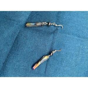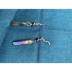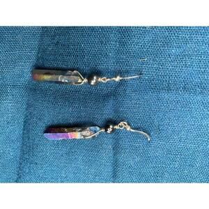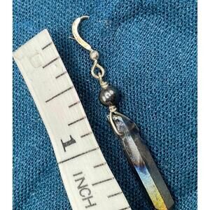 Beautiful aura quartz drop w/ hematite beads earrings on silver hooks