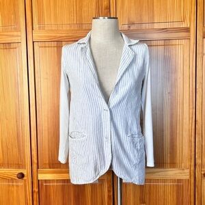 Soft Surroundings XS Long Lightweight Stripe Blazer Cotton Flax Casual Chic