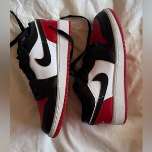 Air Jordan Kids Black and Red Sneakers 1 Low