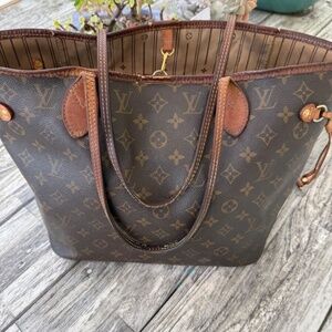 Louis Vuitton Neverfull Tote MM Brown Canvas Monogram. Used condition. Retails for over $2,000. Selling for this price because it is worn and needs repairs. Please see photos for condition. Includes original box and dust bag.