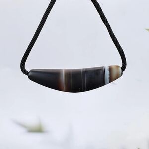 Vein Stone Ox Horn~Inner Mongolia Gobi Banded Eye Agate Curve Necklace Pendant