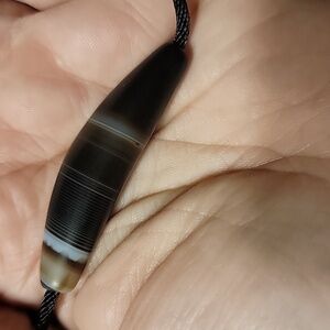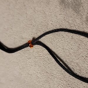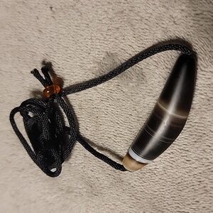 The pendant comes on a black braided rope, which can be adjusted to any size neckline. Fully extended the necklace is 22".