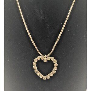 Krementz 14K White Gold Overlay Crystal Heart Pendant 15 Inch Necklace