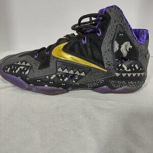 Nike Lebron 11 Anthracite, Metallic Gold, Purple Venom Sneakers model 646702-001. Size 9.5