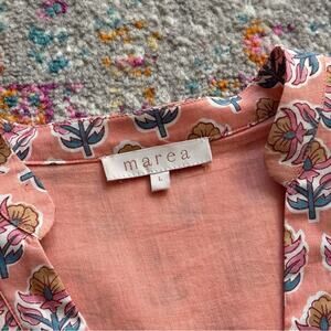 Marea Colette Coral Multi Floral Short Puff Sleeves Cottagecore Midi Dress Large