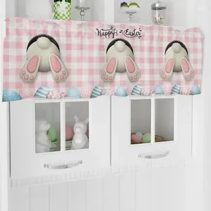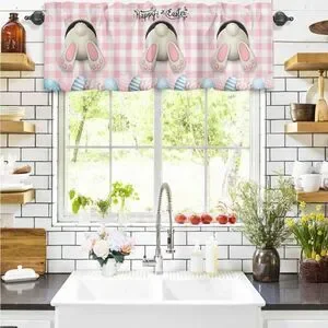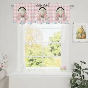 Easter Curtain Valances for Windows, Bunny Easter Eggs Floral Spring Pink Plaid