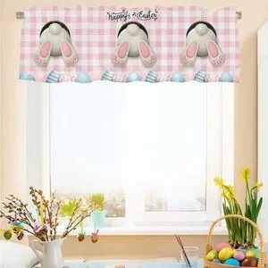 UNIQUE EASTER DECOR: Cute bunny pink buffalo plaid valance keep your home inviting. Curtain valance used to cover the upper portion of windows or used alone on shorter length windows. These sun blocking valances can compliment with any other solid drapes. It is perfect for easter day festivals