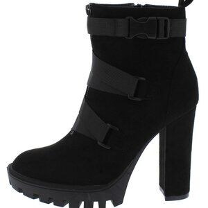 Black High Heel Ankle Boots with Straps